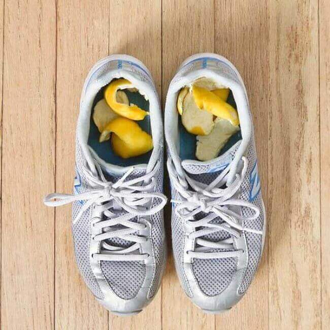 Η χρήση της φλούδας του λεμονιού αρκετές φορές την εβδομάδα απομακρύνει τις οσμές και απολυμαίνει το εσωτερικό μέρος των υποδημάτων. Βοηθά, επίσης, στην αναστολή της ανάπτυξης των επιβλαβών βακτηρίων και μυκήτων που προκαλούν οσμές.